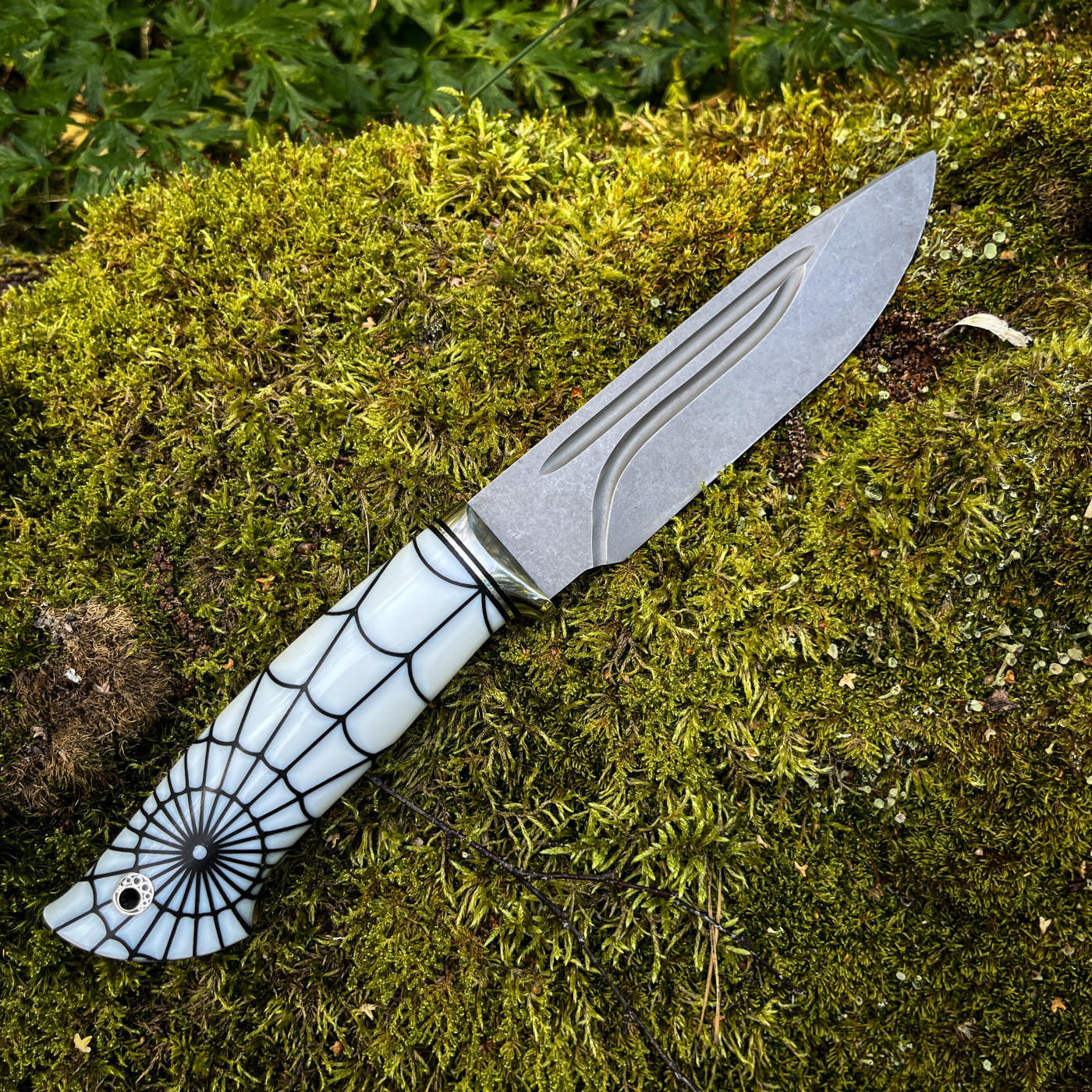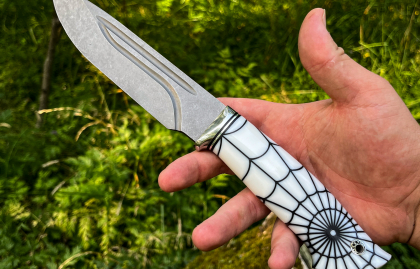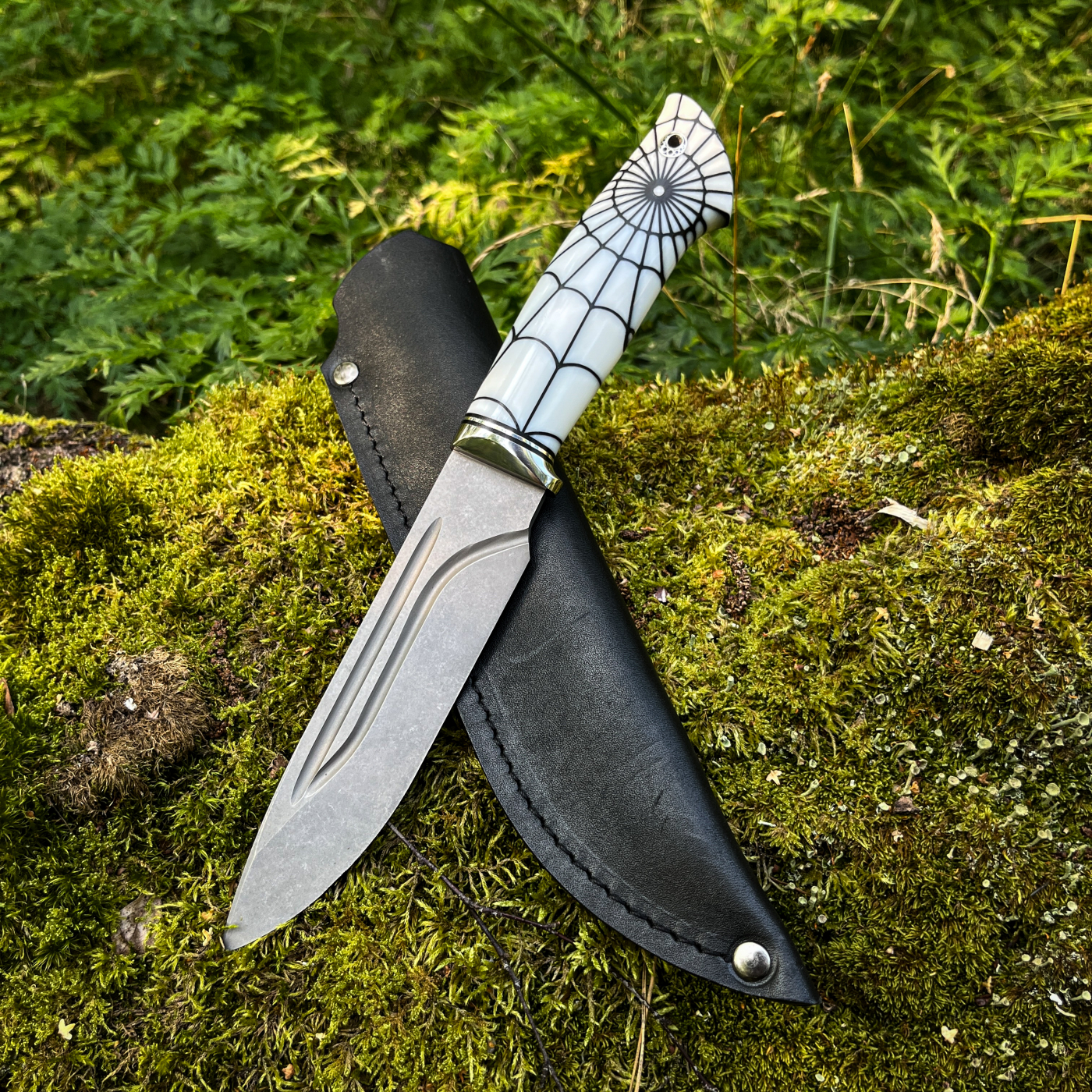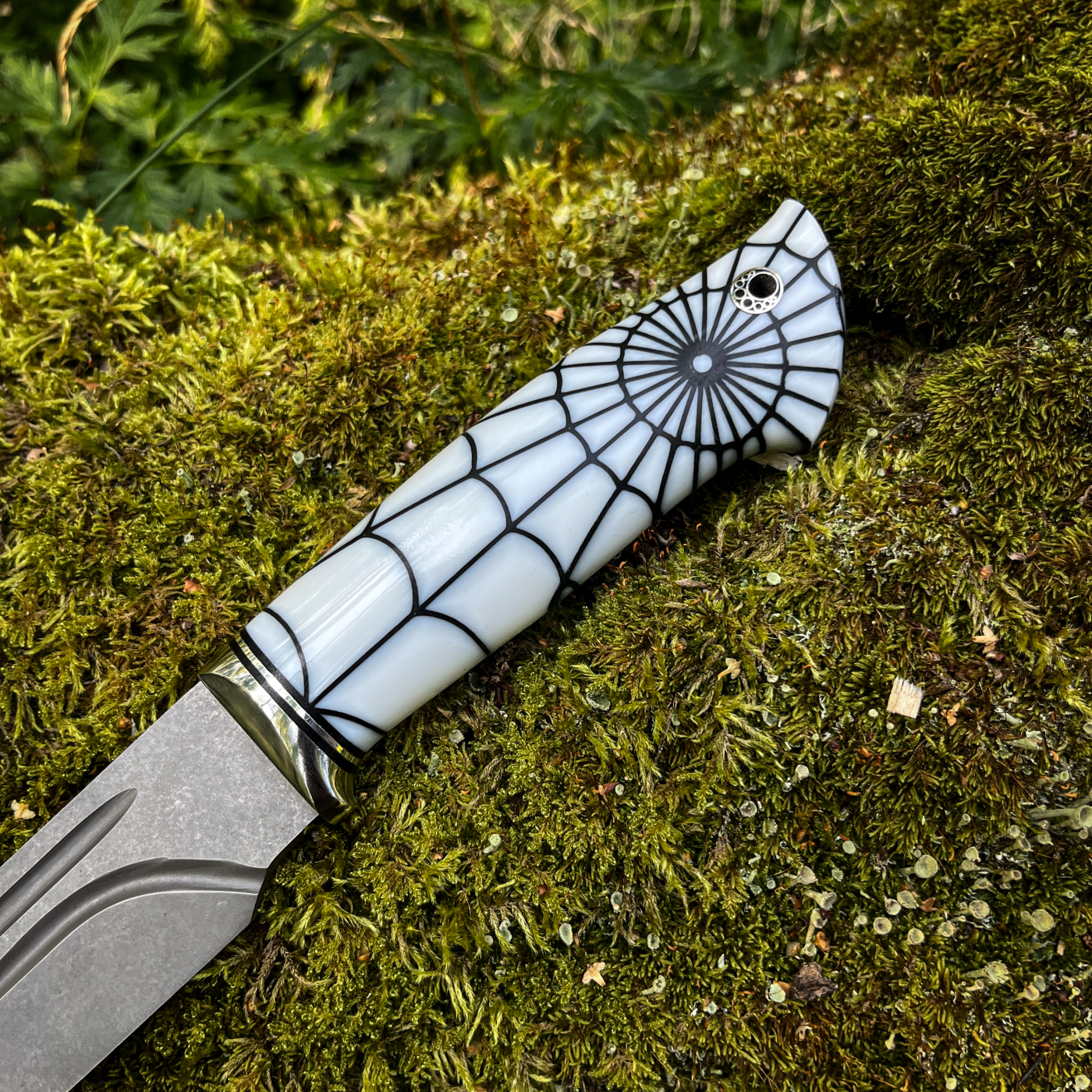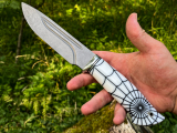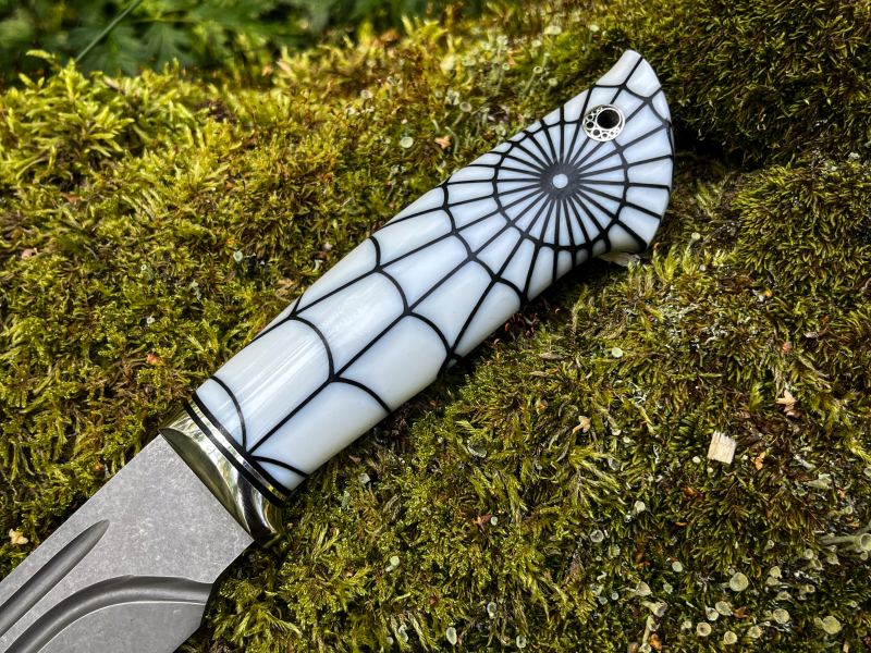 •Рукоять акрил паутина + больстер из нержавейки с проставками g10, на пятке мозаичный темлячный пин.