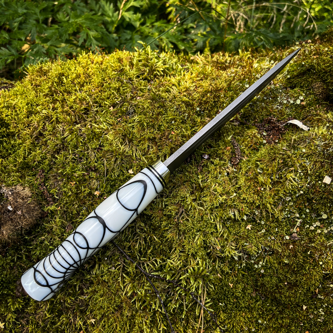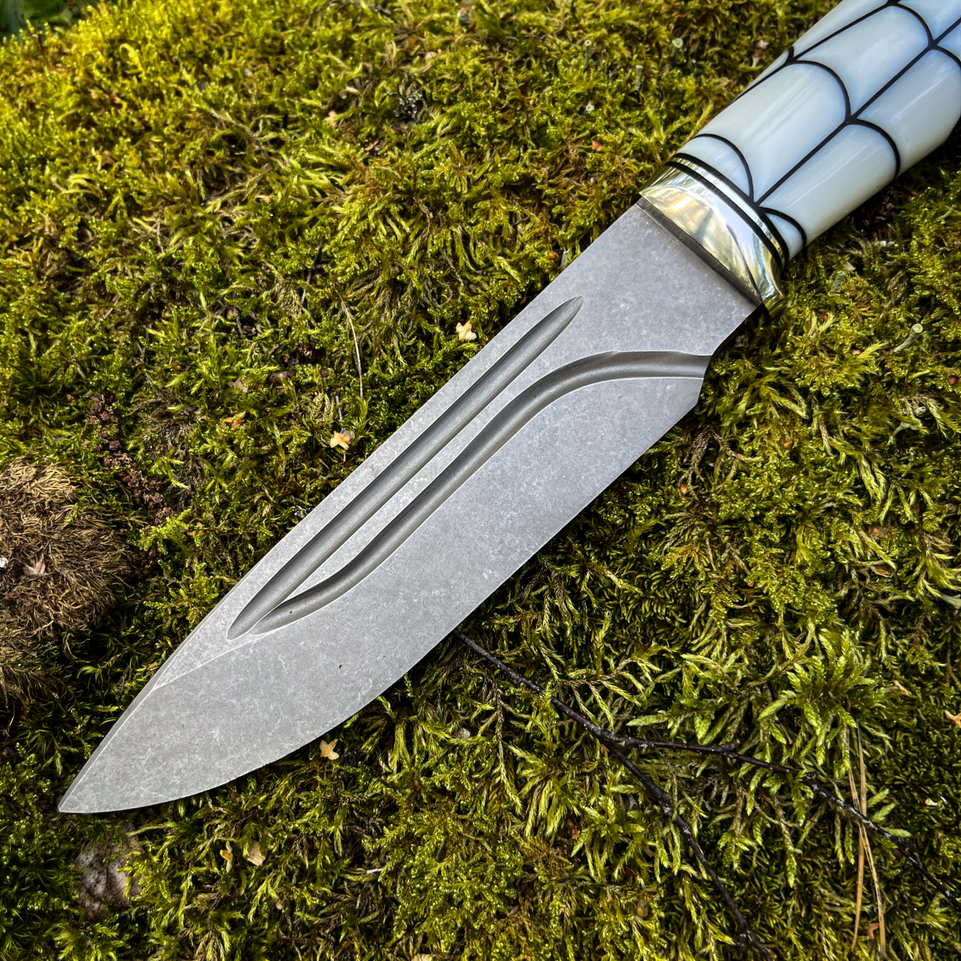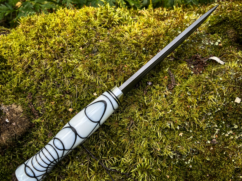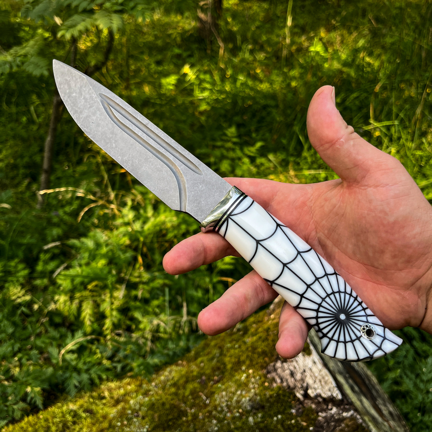 •Рукоять акрил паутина + больстер из нержавейки с проставками g10, на пятке мозаичный темлячный пин.